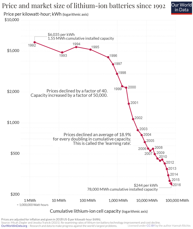 https://www.hdibattery.com/p11807511...72x220-mm.html ... ya las hay en la tienda sin ir más lejos con densidades de 100 Watios h/kg Por eso si las de Sodio (200 Watios h/kg en 2024) se pudieran usar en un Submarino ... ![]() Lo gordo ejque como en otras y similares revoluciones industriales a medida que baja el Coste de fabricación baja el Precio y aumenta el Volumen que reduce el Coste baja el Precio y aumenta el Volumen de la producción y fábricas más y más grandes ... En fin, la reberza Eso sí, los Precios minoristas van siempre muy muy por detrás |