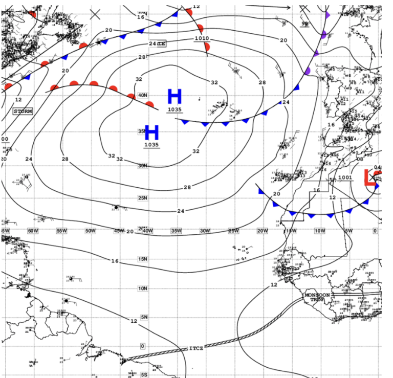 Azores por Br significa gestionar el anticiclon de las azores a la contra?