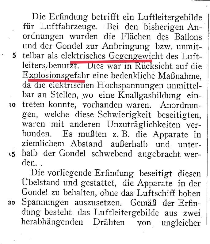 La idea era en la Antena de un Globo ponerle un "eléctrico contra (Gegen) peso (gewicht)" es decir la contraparte de la primera parte de la parte contratante, Jaja ... para no meterle chispa al Globo y crear un "explosión peligro"