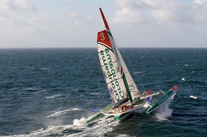 Bueno, Crepes Whaou! como primer 50' y Actual como segundo también, si no rompen nada ni tiene averías, nada sorprendente ya que eran los favoritos. Para mi Lionel, el ganador de hace 4 años, ha tenido poco tiempo para poner el barco nuevo a punto. De momento parece que al único que le ha ido bien la ruta sur-este es a Groupama que se ha distanciado de sus perseguidores, Sodebo por el norte se diría que le ha ganado la partida a IDEC. Para los 50' no está claro a quién ha beneficiado, de los 3 con buenas opciones para quedar tercero uno ha ido por el norte, otro por el sur y el tercero por el centro cruzando las Azores.El par de 60' que han optado por el sur se han quedado un poco descolgados, aun pueden pasar muchas cosas, pero lo veo difícil para ellos. De momento han mejorado la fiabilidad con respecto a la Vendee: ningún mástil roto y sólo una quilla y un timón Claro que las condiciones tampoco están siendo las mismas ... Para los 40' y la clase Rhum ya veremos, estos necesitan previsiones a más largo plazo, yo no me atrevo ha hacer pronósticos: un poco más de viento en la buena dirección, un mar más aprovechable, 4 nuditos extras de velocidad, y en 24 horas recuperan casi 100 millas !! Sólo hay que ver cómo Gitana perdíó 100 en 8 horas mientras IDEC recuperaba 50 sobre Groupama.