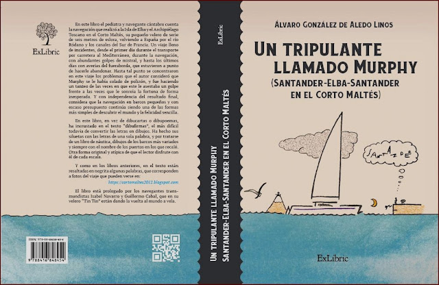 La editorial ExLibrix ha asumido el reto y va a publicar el nuevo libro de nuestra navegación en el Corto Maltés a la Isla de Elba. Su título: "Un tripulante llamado Murphy. Santander-Elba-Santander en el Corto Maltés". Alude a los múltiples incidentes durante el viaje, que parecía que alguien nos había gafado, desde el accidente con el remolque el primer día hasta los problemas con el fueraborda en los últimos, pasando por los numerosos golpes de mistral que nos retuvieron en puerto. Este es el índice: Prólogo, por Isabel Navarro y Guillermo Cabal, del velero Tin Tin. 1 Naufragué en la A68. 2 Etapas invernales en Francia flirteando con el mistral. 3 Golpe de mistral en Marsella y primeras islas. 4 Islas Embiez y Porquerolles. 5 El peor mistral en Cavalaire y el festival de cine de Cannes. 6 Más islas y escala en Mónaco. 7 Tomando contacto con la costa italiana. 8 La costa “pija” y Le Cinque Terre. 9 La llegada de Ana a Livorno. 10 Llegamos a Elba, nuestro destino. 11 Contorneando la isla de Elba. 12 Los “ormeggiatori” pícaros y la isla de Pianosa. 13 El Monte Capanne y Capraia, la gema del archipiélago. 14 De vuelta al Continente y al mistral. 15 Tristes despedidas, deshaciendo camino y el Cristo del Abismo. 16 La salida de Italia. 17 Otra vez en la Costa Azul. 18 Héliopolis, la isla esquizofrénica. 19 La bonita ruta de las islas y los primeros fiordos. 20 Más fiordos, más mistral, y problemas con el motor. 21 Un fueraborda en la maleta. 22 El Río Ródano y los canales. 23 Séte y el Étang de Thau. 24 Nuestro querido Canal de Midi. 25 Las navegaciones más extravagantes. 26 Incertidumbres en Narbona y vuelta a Santander. 27 Resumen, conclusiones y balance personal. Anexo 1 Escalas y millas recorridas. Anexo 2 Pequeño diccionario de términos náuticos utilizados en el libro. Espero que os guste.