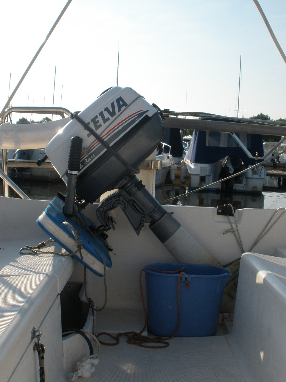 Y respecto al motor de respeto, ya me lo han sugerido pero ¡menudo incordio y menudo desembolso!. Tendría que montar el soporte en popa (que no es sólo atornillarlo, hay que reforzar todo el espejo) y comprarme otro motor. Supongo que en caso de fallo en el Ródano encontraré alguien que me remolque para sacarme del canal de los mercantes, y a la mala me compraría otro en Francia. Ventajas del fueraborda y especialmente si es pequeño y barato.