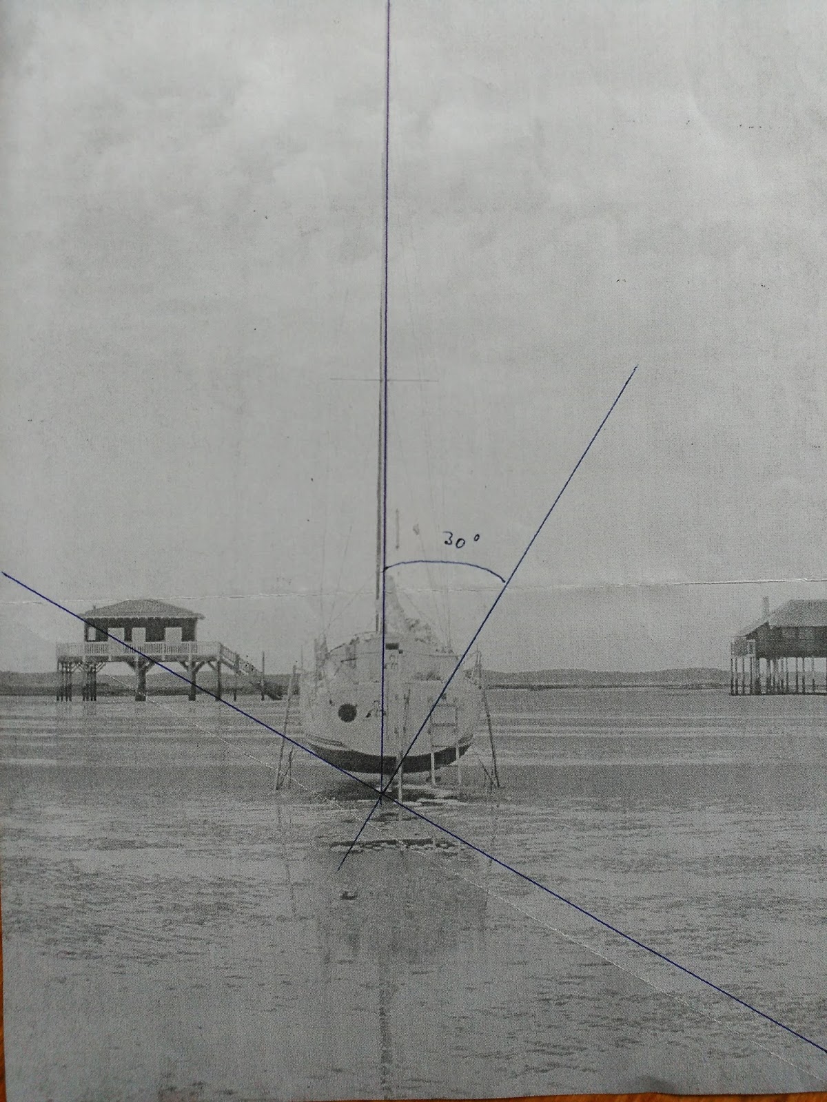 Hasta aquí la teoría, en la que todo está bien construido y estructurado. Por desgracia la realidad es cambiante y no podemos excluir en absoluto algún percance o accidente. Os confieso que no me gusta nada varar. El peso del barco (aproximadamente una tonelada y media) en la situación ideal se apoya en el quillote, pero cualquier desviación de la vertical perfecta sobrecarga los apoyos de un lado, forzando el material. En los minutos inmediatamente anteriores a quedar en seco, cualquier olita producida por el viento o por otro barco se traduce en golpes violentos contra el fondo, que se transmiten a los cáncamos de la cubierta con el riesgo de arrancarlos. Aunque todos dicen que se duerme mejor, por faltar las olas y los meneos de cuando se duerme a flote, como haga viento silba mucho más en la jarcia ya que el mástil no cede hacia sotavento como cuando el barco flota; eso te da la sensación subjetiva de estar soplando mucho más de lo real y la preocupación no te deja conciliar el sueño.