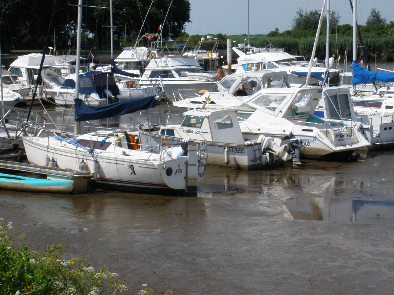 • Bajar a tierra con el anexo mientras todavía queda agua y tener que volver cuando el puerto se ha secado. En efecto, te arriesgas a tener que pisar ese barro de arenas movedizas y si no puedes hacerlo, tener que dormir en tierra en un banco hasta que la marea suba.