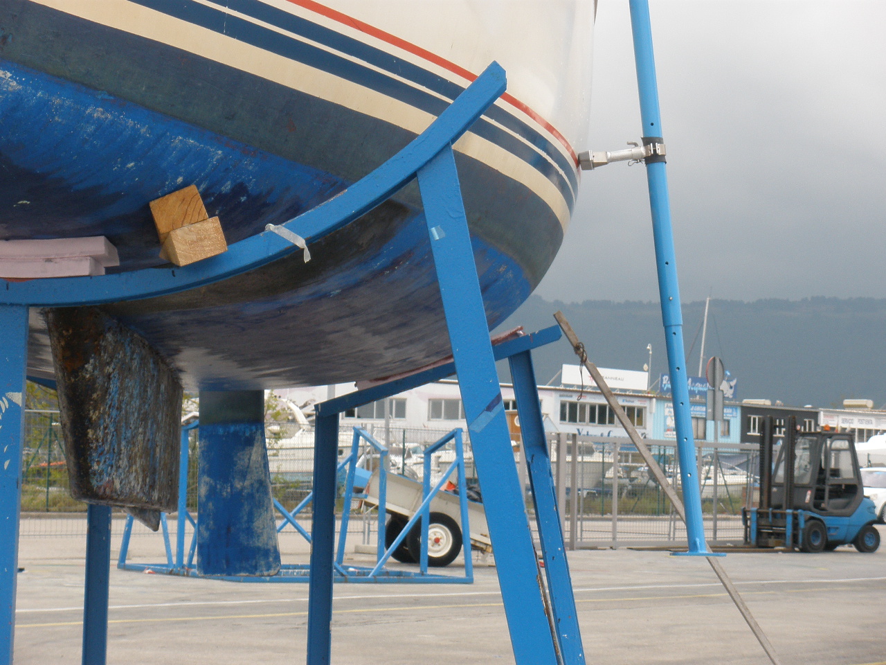También podría ocurrir si el fondo es irregular, inclinado, o uno de los puntales coincide en una poza. El agujero sería como el del accidente con el remolque en la navegación a la Isla de Elba, aunque por suerte por encima de la flotación. Pero sería un percance de esos que dan al traste con un viaje.