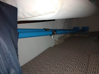Como en la vuelta a Francia iremos en todas las etapas de dos en dos, esa cama sólo se usará por una persona, en su mitad de babor, dejando la de estribor, donde veis los puntales, como almacén.