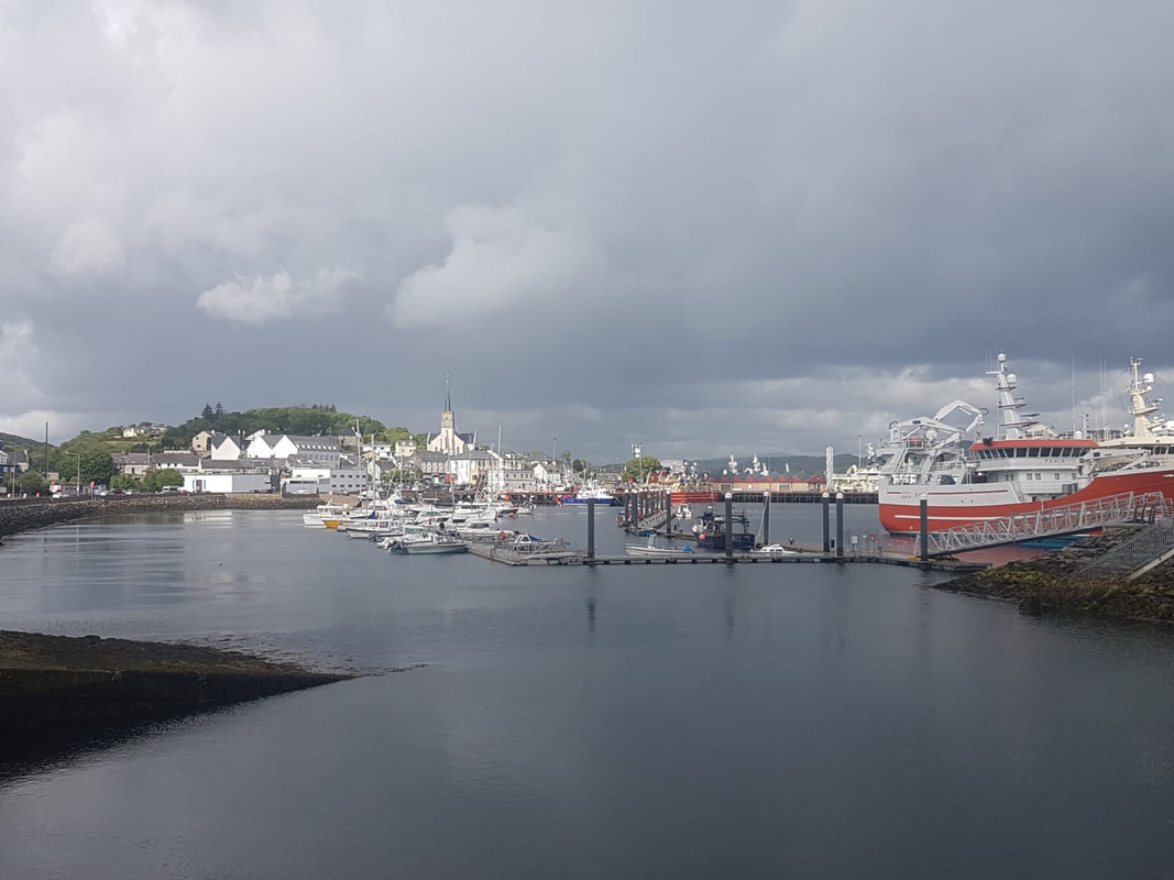 La última singladura antes de la marcha de mi amigo es la más tranquila, ha bajado el viento, ha bajado la mar, el canal The Minch es un pequeño mar interior que solo por el norte o por el sur puede entrar la mar de leva, eso sí, casi toda la travesía a motor porque el viento anunciado solo se ha dejado asomar cuando llevábamos dos terceras partes de las sesenta y cinco millas recorridas. Al final llegamos a Ullapool, en el interior de un profundo fiordo, similar a los noruegos, este es un pueblo pequeño en la Escocia de tierra firme, con una buena conexión de ferris con las Hébridas y que dispone para las embarcaciones deportivas un buen campo de boyas gratis.