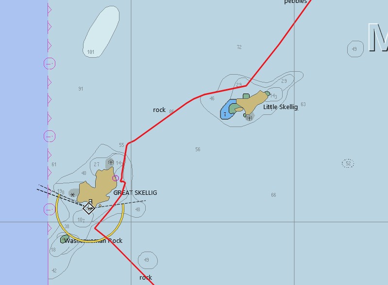 He comido justo a tiempo para atravesar por el paso de las Blasket, un archipiélago de islas y peñotes, separadas de la península de Dingle por un pasillo de media milla en cuyo canal tengo una corriente favorable de dos nudos y medio, junto a que la brisa ha aumentado lo cruzo como una exhalación y pronto alcanzo la bahía de Smerwick, un encantador paraje rodeado de granjas y pequeñas comunidades, en cuyos aledaños he visto los primeros árboles de Irlanda ¡Alheluya! largo el ancla junto a la playa y tranquilidad.