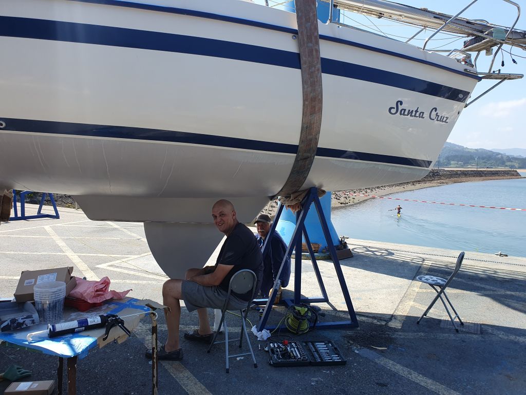 Sí, nada, me quedan seis manos de pintura a la orza y al inox del timón, dos epoxy, dos de imprimación y dos de patente, cuatro al timón, montar el telar y al agua, a ver si me da tiempo para este finde.