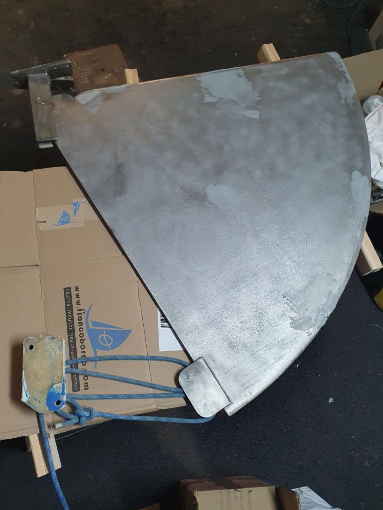 Ya sólo falta pintar y montar con su driza nueva. Estoy elucubrando la manera de instalarle un ánodo por algún sitio, pienso que le vendría bien.