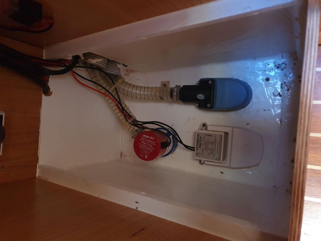 Despues de leer el foro del TES sobre sentinas y observar el comportamiento de la sentina del mio, si se le puede llamar así creo que el agua acumulada, de por ejemplo un suceso como haya una fuga en la bomba de refrigeración del motor intraborda que en una o dos millas a 3000rpm puede acumular una cantidad considerable de agua, no termina en la sentina inmediatamente. Creo que se va acumulando en algunos huecos, como la zona de debajo del fregadero (que en mi caso tiene un falso suelo con una tapa) y se va filfrando muy poco a poco a la zona donde esta la bomba de sentina.
