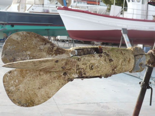 Hola cofrades, hoy, despues de 16 meses he sacado el barco para darle patente, y como prometi os pongo las fotos de la helice, una plegable Gori 3 palas, tratada con Velox Plus, siguiendo las indicaciones de Matteo Pesle, de Velox Plus , pues bien despues de estos 16 meses os tengo que decir que se han pegado no mas de 8 caracolillos, sin alga adherida y sin otras incustraciones, o sea un 100 % de rendimiento, Ahora la volvera a pintar con el mismo producto conforme me ha indicado Matteo, al que desde aqui le doy las gracias, una por el obsequio que nos hizo el año pasado, y otra porque efectivamente la patente es una gozada, su resultado es espectacular. Aqui en Burriana ya solo se pinta con esta, las helices y ejes. Os dejo unas fotos