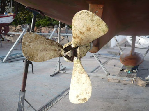 2- Por la posición del barco en el varadero, la hélice recibía el sol (y mucho) durante muchas horas. ¿Puede que haya sido un secado demasiado rápido y fuerte? vamos, que haya "cocido" la pintura ... Igual tenía que haber protegido la hélice y el eje una exposición directa al sol...