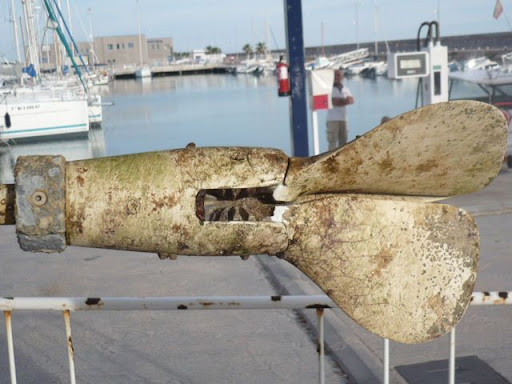Voy a intentar subir una "afoto" de como estaba la hélice después de pasar la pistola de agua. Quise hacer una foto nada mas salir el barco del agua pero llegué tarde.