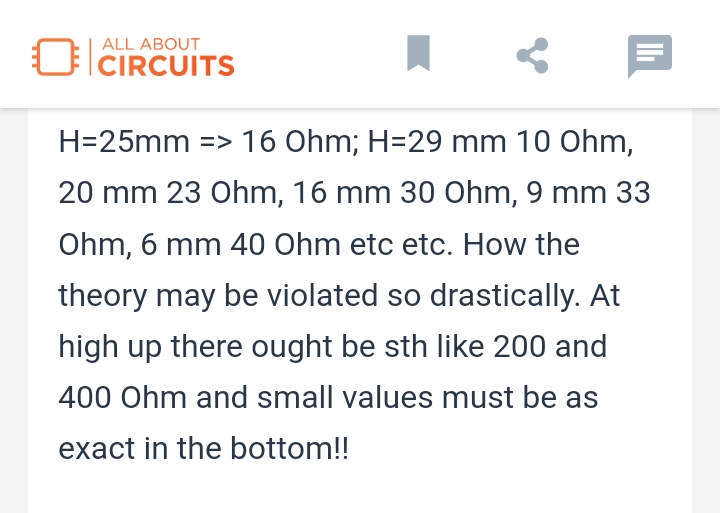 ![]() Dejemos de lado la enredada metafísica del invento y sus arcanos insondables ... Y ... Vamos a los Números Con dos cables de cobre pelado de 2 mm de diámetro y 1 milimetro de radio ... separados sus centros unos 18-20 milímetros ... construimos un Transformador de Impedancia con una 'Z' de unos 350 Ohmios ... que nos baja la Impedancia de la Atena (de unos 1175 Ohmios) y nos la deja en unos digamos bonitos y manejables 100 Ohmios Pues ya está la cosa bien cerca de los 50 Ohmios de la Emisora Y ahora el enredo del ajuste fino de dónde carajo hacer las soldaduras La cosa estará en algún lugar entre 45 mm y 25 mm Por eso pienso que es razonable apostar por 35 mm y a lo mejor hacemos diana o a lo peor se quedará tal vez quizá en 75 Ohmios que eso ya ni lo nota el usuario |