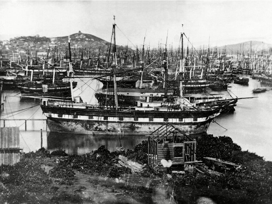El bosque de jarcias y mástiles, corresponde a los barcos abandonados por sus tripulaciones que tentados por la fiebre del oro, decidían tentar suerte desertando y dejando a los barcos sin brazos para salir otra vez a la mar.