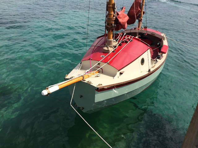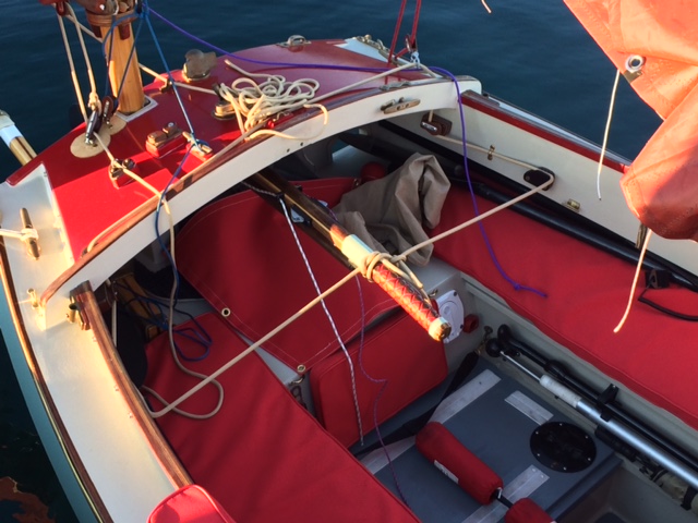 los editores de la revista Small Craft Advisor pusieron en marcha a John Welsford que le envió los bocetos preliminares a Howard Rice y otros ... y de la interacción entre todos estos entusiastas de los chiquitajos ha nacido este llamativo bicho ... que ha sido un éxito: el prototipo de este botecito de 11 pies y 11 pulgadas tocó el agua el 11 del 11 del año 2011 y ahora al parecer ya hay unos 60 --- en cuanto al aparejo que ha elegido Howard Rice la mayor ventaja de una Mayor con cangreja ... es que largas la driza y cae toda la Mayor al momento, y en un bote pequeñajo eso tiene su valor --- mi comedura de coco (para mi botecito para la jubilación) es conseguir la misma funcionalidad de una yola en un balandro moderno mi idea para un crucero minimalista de 6 metros de eslora es un Foque en su botavara (sin movimiento hacia arriba) con un rizo y una cargadera y con los cabos reenviados a la bañera, el palo encima del centro de la carena al final de la bañera y así uno está a pie de palo como en la cubierta de un barco grande pero sin salir de la bañera, y la baluma de la mayor cayendo justo encima del espejo de popa de tal forma que no hace falta mesana: el bote tiene equilibrio estable aeronáutico y encima capea al pairo como una yola (y recogiendo la pala del timón un aventurero capearía con un saco de escombros o una barata ancla de capa Lalizas de 1,8-2 metros de diámetro) |