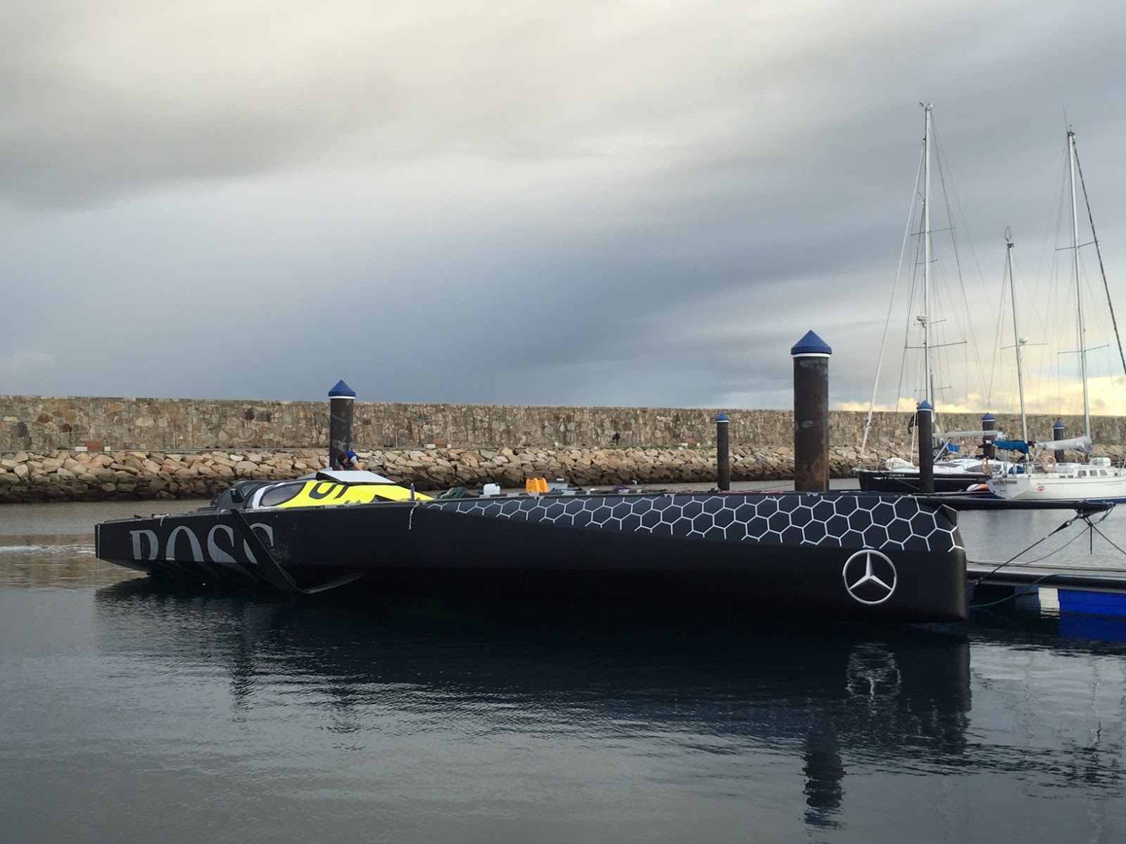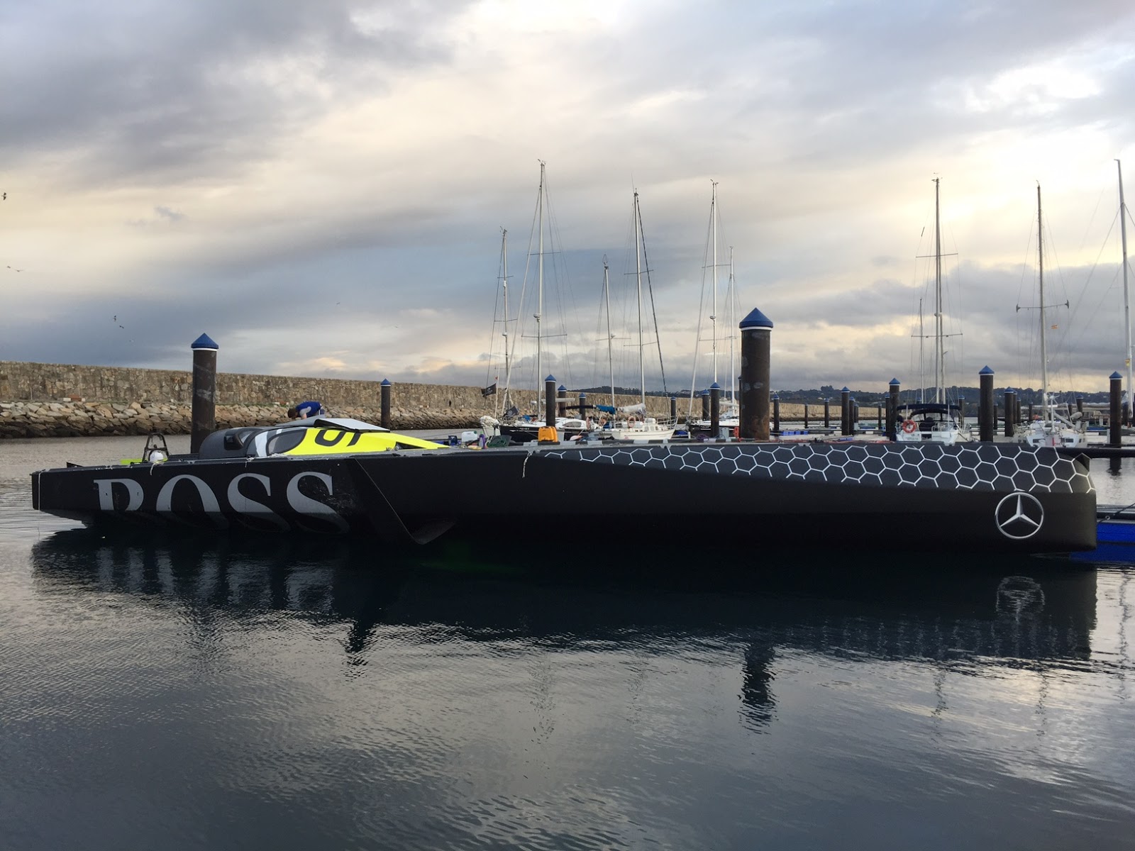 Una pena no poder desplazarme a A Coruña para ver el Hugo Boss, aún así dañado debe de intimidar... aún recuerdo, haciéndolo coincidir con una charla de Higo Ramón en el náutico, una visita para ver el Aviva de Dee Caffari (ex Group4 de Golding) de Dee Caffari, también "dematé" y amarrado en los pantalanes del náutico en el ¿2006/07?....