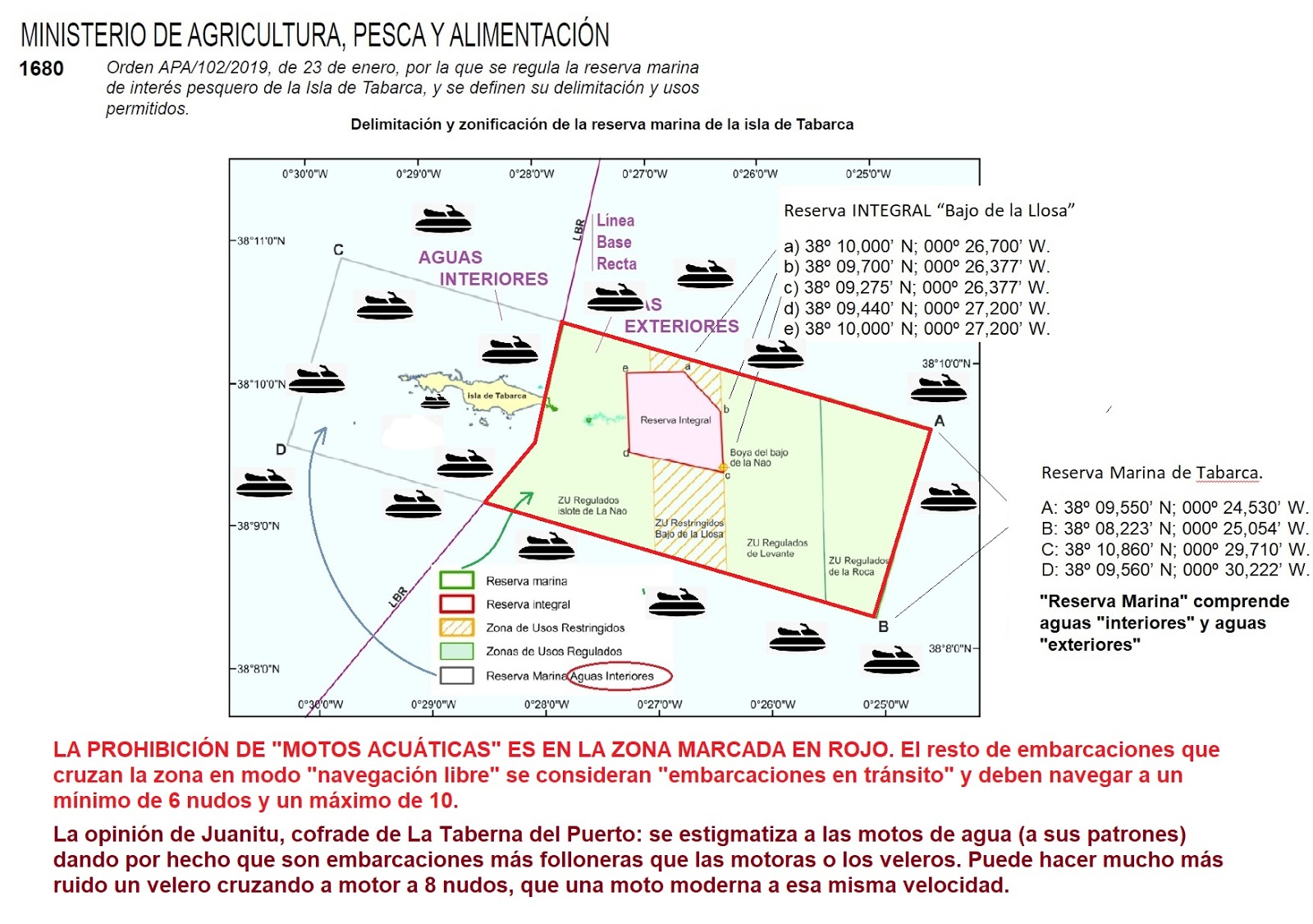 Y una cosa me ha llevado a la otra, y he preparado otra ficha-imagen sobre lo de las motos, que parece que a las motos acuáticas les hayan amputado un pie, y sólo se les impide navegar en una zona-pequeña de la Reserva.