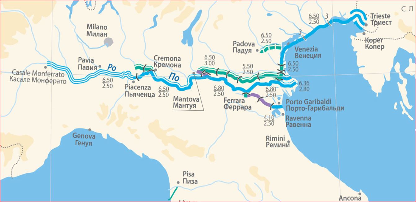 Hemos sustituido el plan inicial de ir al Mediterráneo por el Canal de Midi por finalizar la vuelta tierra adentro, por el río Po hasta donde deje de ser navegable. El Canal de Midi ya le conocemos, el Po no, y los kilómetros de camión van a ser parecidos, así como la duración del viaje. Nos quedaremos a 50 millas de cerrar una vuelta completa a Italia navegando, porque más no se puede avanzar (por el Po nos meteríamos en los Alpes, y eso es demasiado hasta para el Corto Maltés).