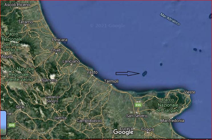 La costa Oeste de Italia tiene muchísimas islas, y todas muy conocidas: Elba, Capri, Isquia, Las Eolias, algunas han protagonizado películas o el exilio de personajes históricos. En la vuelta a Italia iremos a conocer las más posibles. Pero la costa Este sólo tiene un pequeño archipiélago, justo frente al espolón que dibuja la "bota" de Italia: