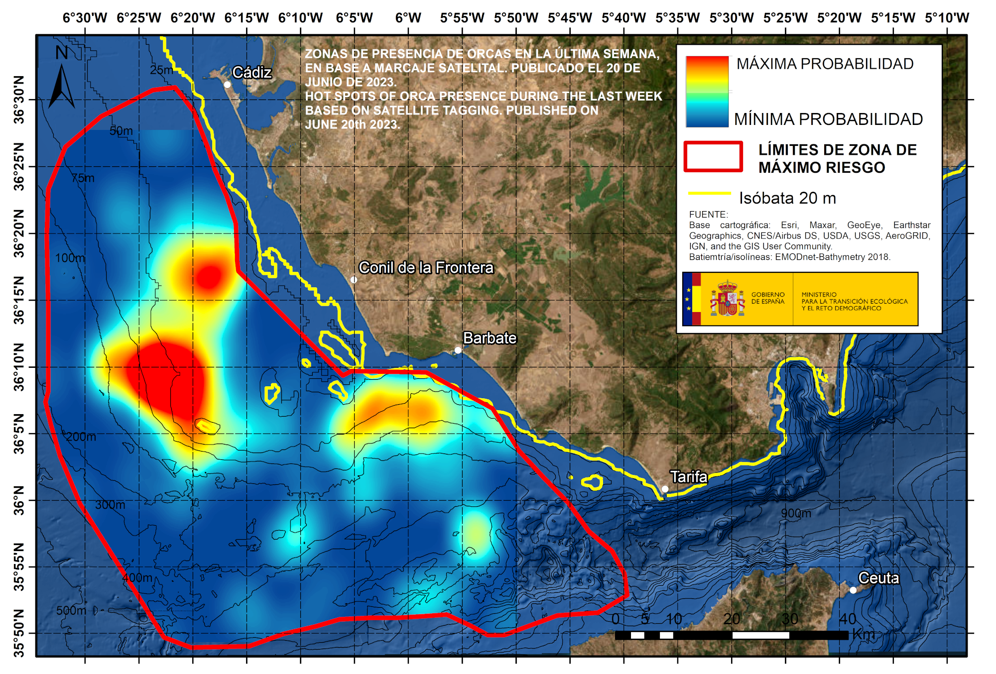 Han actualizado con datos de la semana pasada. Parece que se alejan de la costa de Barbate y van más Mar adentro por la zona de Conil.