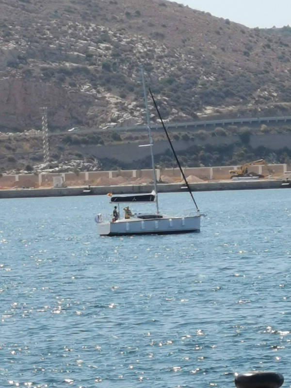Ya en casa después del viajecito, el pobre Paulino ha quedado protegido en el Club de Regatas de Cartagena que ayer abortamos travesía de Cartagena- La Manga porque arreciaba levante muy racheado.