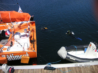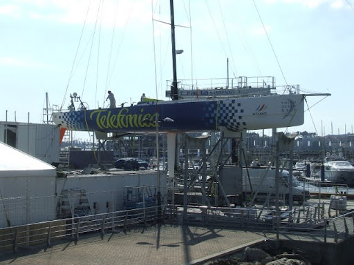 Detalle del piano del Estrella Damm Vistas generales de los barcos (sin el Movistar) Y aqui el hermano mayor de los Imoca, en su cuna en tareas de mantenimiento. |