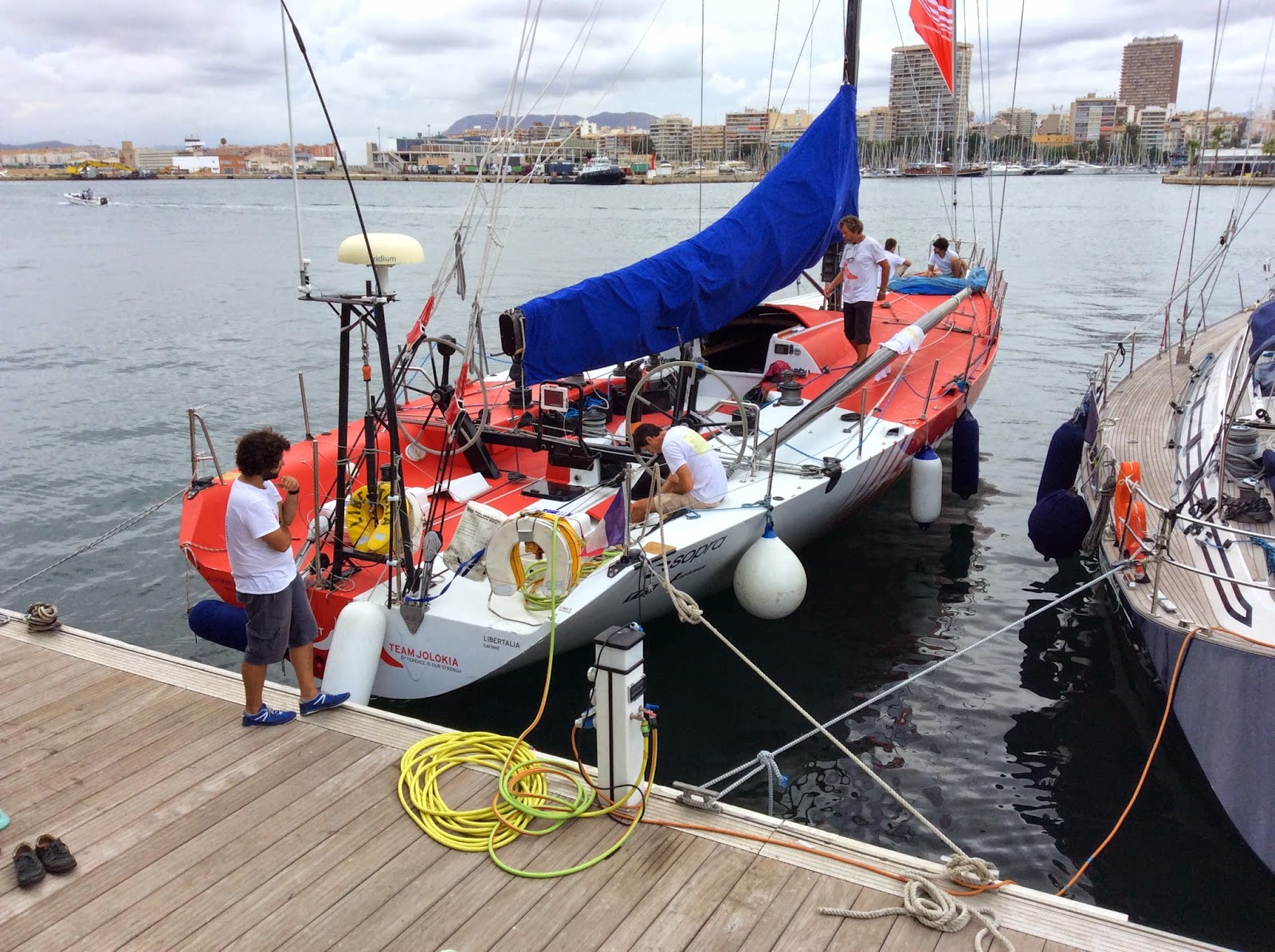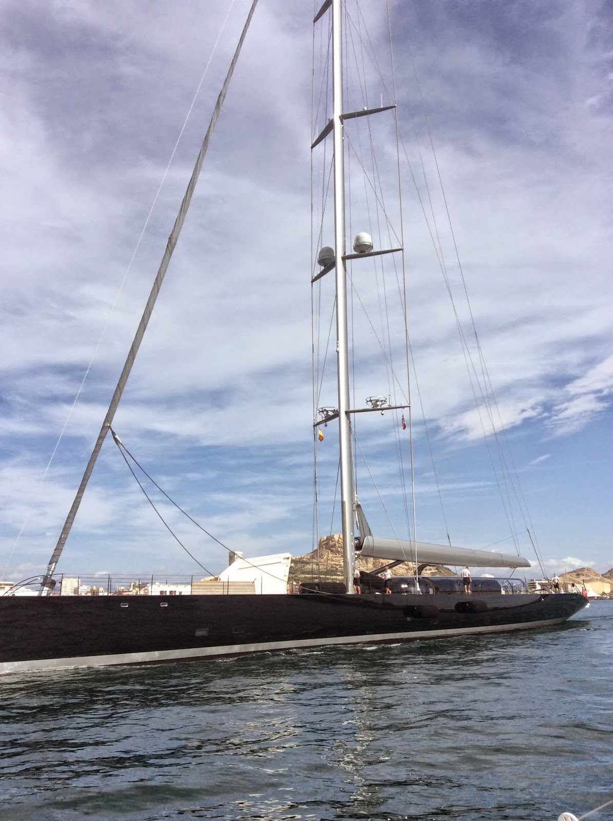 Había ciertas curiosidades que se podían ver. King`s Legends pintado de blanco. Otra vez el Flyer Charles Jourdan que no se ha movido desde la última edicción y tampoco lo ha hecho en esta. Aglaia de 66 m. 5 crucetas. Aquí con las compuertas levantadas para meter las defensas. Clase J Lionheart del que perdí las fotos y se fue con la flota deVO65 el VO 60 de Knut Frostad Djuice Dragons para laWhitebread del 2001 Y algún conocido Swan 65 similar al Sayula . Es una pena que se suponga este el último año de salida en Alicante porque se disfruta un montón. Me pareció que el Vestas a parte de salirse de línea en la salida y liar el asimetrico en la costera daba más velocidad al barco. Las chicas del Sca fallaron dos maniobras en boya pero igualmente eran muy rápidas. El grupo de la salida estuvo encabezado por Brunel Abudabi y Mapfre y un poco más distanciados los demás.Ya veremos. Ahora queda seguirlos. ![]() |