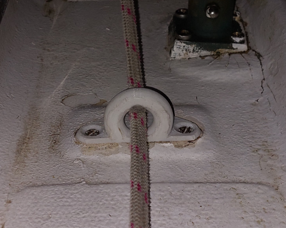 Y efectivamente, el rozamiento es un poco problemático, no porque añada algo de resistencia, sino por el desgaste, que hace un poco de mella en la argolla. Voy a probar a forrarlo con cinta de teflon, aunque estéticamente no sé que tal quedará (aunque con el aspecto general del barco tampoco será un problema ).