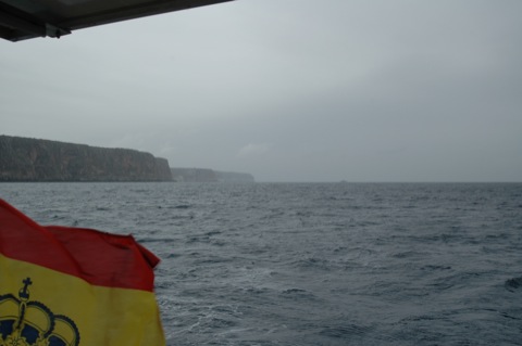 No oí las sirenas del ferry, como estaba acostumbrado a oírlas antes de zarpar los buques en el puerto de Cádiz. Ni la primera sirena, ni la segunda. Ni la tercera. Como en las iglesias con sus campanas avisando a los oficios litúrgicos, conocía el margen para largar las amarras de los noráis, antes de zarpar. Aquí en Formentera, no. He recibido tres sirenas seguidas, claras, secas, contundentes. Buuuuuuu, Buuuuuuuu, Buuuuuuu. Atrás. Está dando atrás el ferry. Es el ferry que marcha para Ibiza. Hay viento de poniente, fuerza 3. Preparo a Telémaco para largar amarras rumbo Cabrera. Las últimas compras en el supermercado, los despidos en Marina Formentera que tan estupendamente me han tratado y donde me he sentido muy acogido, y reposto combustible. Adiós, querida Formentera. La Savina. Illetes. Els Trucadors. Espalmador. Tantos buenos recuerdos de una y tantas veces, que ahora van desfilando por mi estribor. Sigue el viento del oeste, de fuerza 3, con mar rizada. El día está despejado. Brilla el sol. En Espalmador diviso sólo tres barcos fondeados. ¡Qué diferencia con el verano!. Me quedo con ganas de fondear aquí, pero desisto en pro de avanzar hacia Cabrera. La sonda va marcando cada vez menos metros, hasta el mismo paso de los Freus. Hay amplitud suficiente, pero pasarlos de día es diferente a la noche. De noche, con las señalizaciones, sus faros y boyas, da otra sensación. Impresiona pensar en cuántos barcos han errado su paso, por diferentes motivos. Recuerdo el barco que encalló el año pasado, en la regata “Ophiusa” por Semana Santa. ¡Todos unos capitanes de yate!. Cae la noche y entro en la ensenada de Santa Eulalia. Toca pernoctar. Ya he avanzado unas millas que me acercan a Cabrera. Fondeo con una sonda de 3,5 metros, en el contradique. No hay ahora ningún barco fondeado, salvo los pocos fijos con boyas. Ahora sopla norte, de fuerza 2. Se aventura una noche placentera. He navegado con el silencio de la vela, a resguardo de la luna que empieza a vigilar la noche. Con este viento largué el génova por la amura de estribor una vez pasados los Freus. Sopla tan suave, que no me molestó la trinqueta. Con una ligera ayuda pasó el puño de escota a la otra banda.