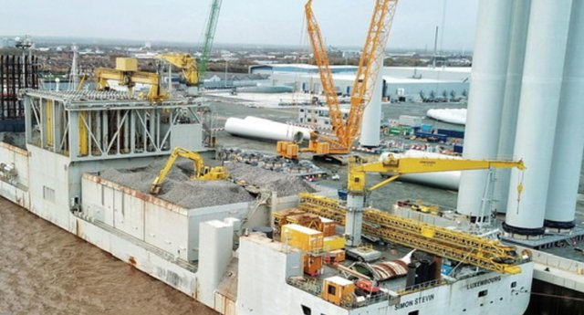 Fondeado en la ensenada de Malaga, el Simon Stevin, un “tubero enterrador”