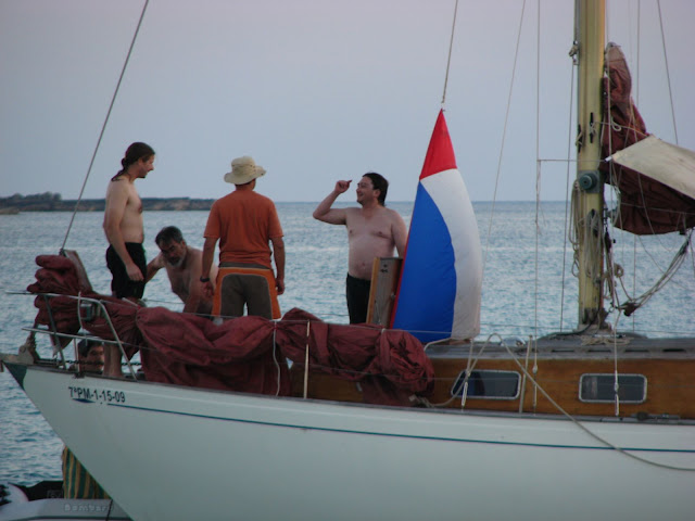 La organización, estupenda, el concierto del viernes ... perfecto, la cena de ayer, muy bien y encima aderezada con la transmisión radiofónica de la victoria de España en el mundial, se repartieron una serie de Documentos de acreditación de ciudadanía balear honoraria a insignes cofrades de allende nuestro mundo, dos noches de fondeo maravilloso sin una ola y despertando sobre esa especie de cristal que son las aguas de Es Trenc, sinceramente, ¡¡¡¡ No se puede pedir más!!!