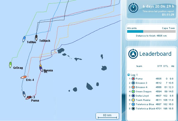 Tengo un problema similar, por que a pesar de que puedo instalar el plug-in no se que pasa con la tarjeta de vídeo que veo el "el mundo todo negro" cuando arranco el Virtual Spectator, por eso sigo la regata en este link que todavía funciona http://www.traclive.dk/events/event_20081011_VORLeg1/ La cosa se ha puesto muy interesante, el TNegro ha pasado de último a segundo en dos días. ![]() |