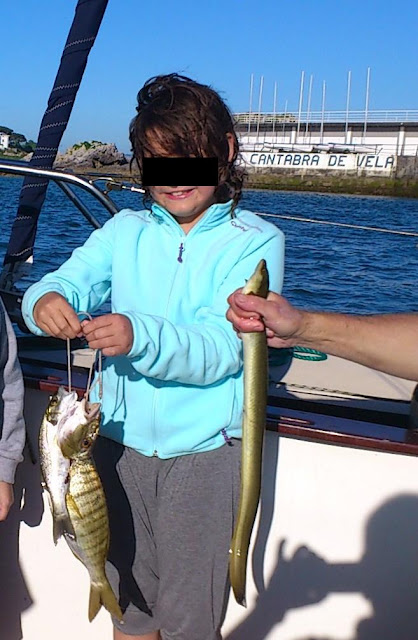 El fin de semana del 6-7 de julio las navegaciones con los niños del Hospital Valdecilla fueron especiales. Un grupo se quedó en la bahía, como siempre, entre otras cosas aprendiendo a pescar con un compañero que le enseña todos los trucos de la pesca en la bahía. Y no se les dió nada mal: