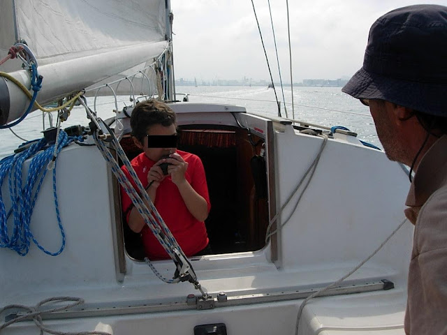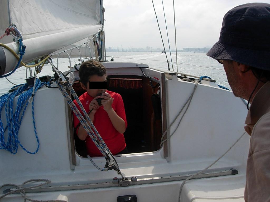Aburriéndose no, ¡hay tanto que enseñar en una travesía!. Y en último término se saca el parchís... Lo malo es cuando alguno se marea. Pero para las travesías seleccionamos un poco a los grumetillos, y vienen los que suponemos que ya están amarinados. Los nuevos se limitan a las navegaciones dentro de la bahía, donde es casi imposible marearse.