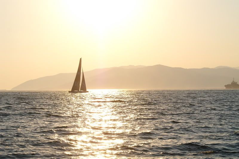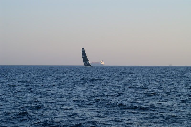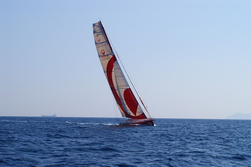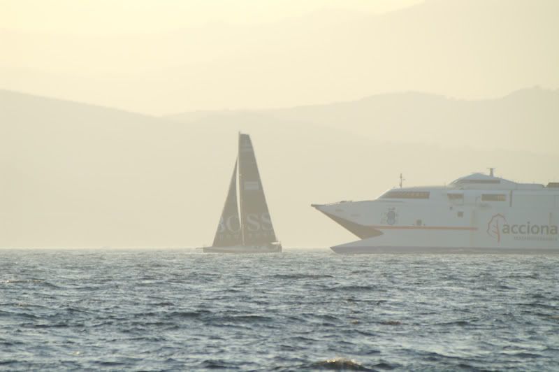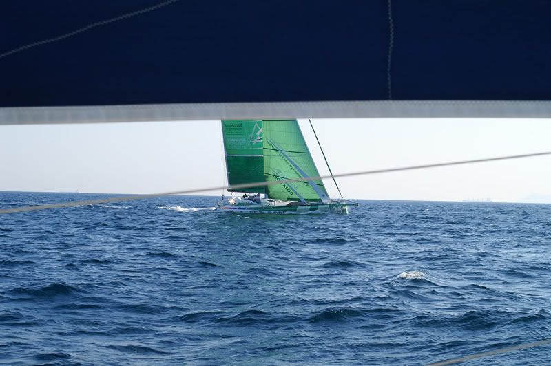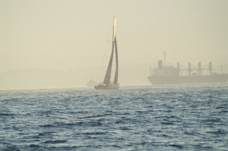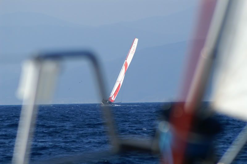 Salimos a navegar por el Estrecho el mismo dia que varios de los barcos de la Barcelona World Race pasaba por el Estrecho. Camara de video y a grabar. Uno de ellos el Hugo Boss, sale un poco lejos pero es de los mas bonitos. Vimos 4 de ellos. Todo un lujo.