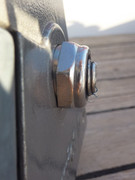 Y aquí viene el problema con los costados de los escoteros: si esos costados no son perpendiculares al eje, una tuerca que rosque en el eje no apoyará sobre la superficie exterior del escotero. La solución fue cilindrar parte de la tuerca de modo que ésta apoye sobre un rebaje que tiene el cuerpo del escotero alrededor del taladro por el que pasa el eje y que sí es perpendicular a éste.