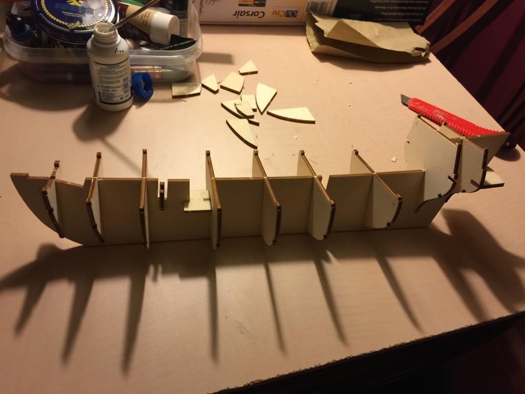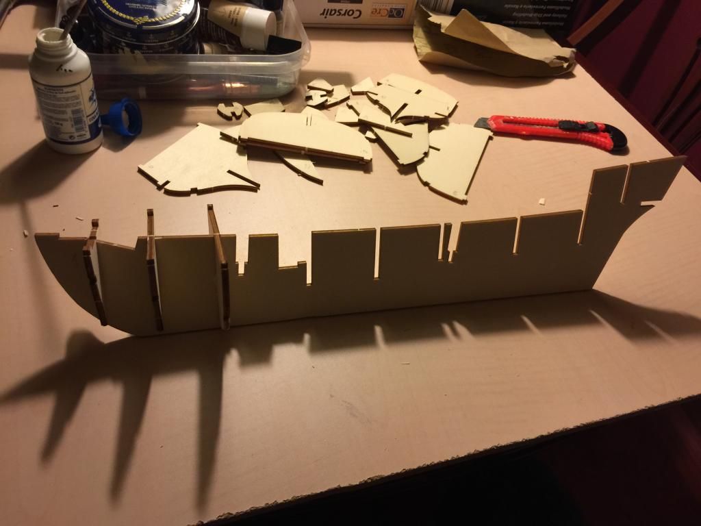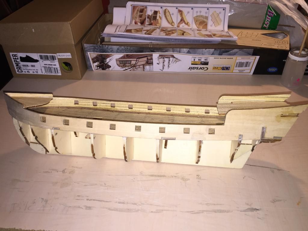 Os dejo mis avances sobre el barco pirata Corsair.Ya estamos casi terminando el forrado del casco.