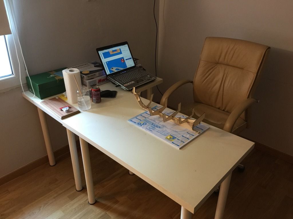 Hola a todos que os escribo desde mi taller de maqeutas do una pausa para esperar a que se seque mi Remolcador Sanson y asi aprovecho para enseñaros mi nuevo taller de maquetas.Con unas mesas vieas y un sillón yo he hehco mi astillero de maquetas. Cuando termine el remolcador empesare con el Marina II o tengo aquí encima de la mesa xddd.