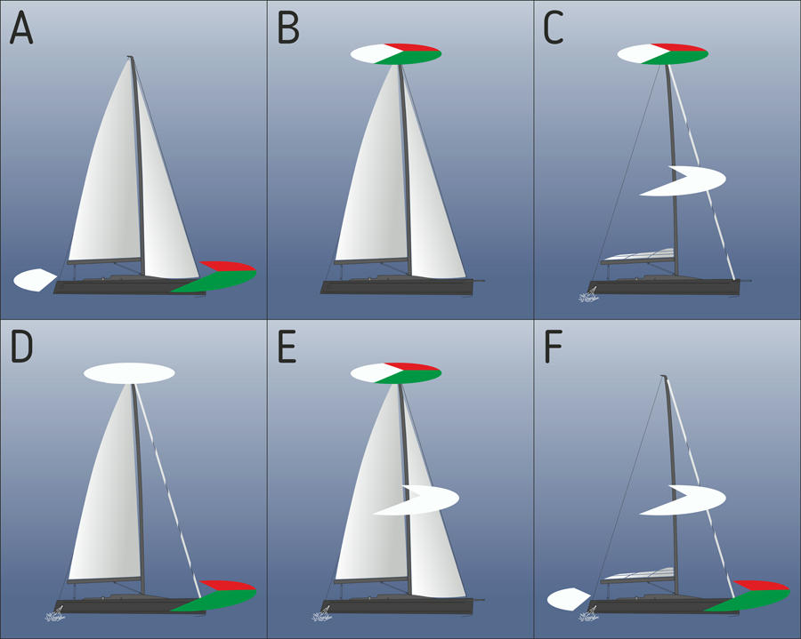 Cúales de estos veleros de 10m de eslora navega conforme al reglamento?