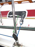 en el arraigo del obenque o en el pie de candelero puedes poner un mosquetón de apertura rápida. El anillo de fricción debe ir montado sobre el cabo todo el tiempo, pues no puedes abrirlo... y por otra parte casi cualquier cabito puede servirte para hacer una gaza y que el anillo de fricción quede junto a la banda, sujeto por el mosquetón de apertura rápida. No sé si me habré explicado... Si el anillo de fricción no está desde el principio montado sobre la escota o braza no podrás llevarlo a la banda.