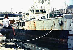 Es increible que no aparezca en internet ni una foto de ese barco cuando todavía estaba en servicio, así que no he podido comprobar mis recuerdos respecto al hecho de que el cañón ballenero estaba a proa y no a popa como dice el autor del artículo.