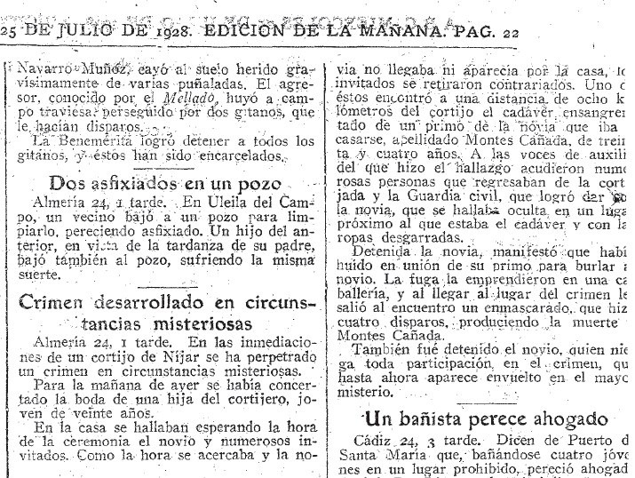 En los últimos años lo poco que quedaba lo estaban expoliando. Hasta se llevaron los escalones de madera del oratorio. Este edificio emblemático, y los sucesos de tiempo atrás inspiraron a Lorca, tras leer la noticia titulada "crimen desarrollado en misteriosas circunstancias". Fue tras la lectura de esta, cuando Lorca comenzó una de sus obras maestras: Bodas de Sangre