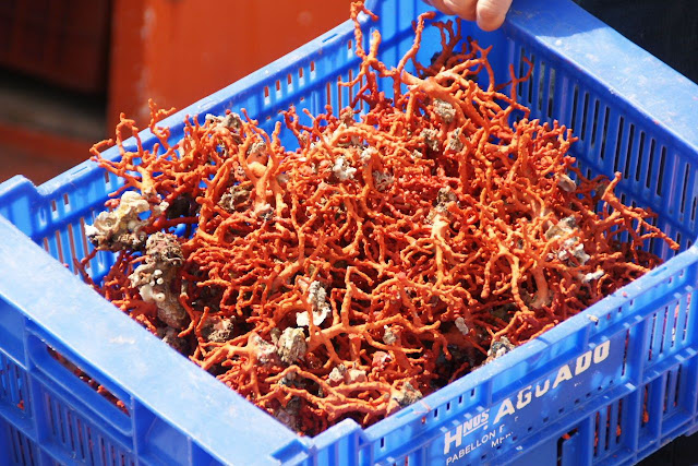 manta ( ya los he visto más veces) sino que además hacen alarde de que hay poco pero ellos encuentran bastante, les hice fotos, dado que ellos posaban sin ningún reparo ,enseñando su conquista y claro no me extraña dado que aunque nos parezca a algunas personas increíble, en España la captura de coral rojo esta considerada como un arte de pesca normalizada, de hecho España da licencias de pesca para este arte y al parecer no pone ninguna restricción incluso cerca o en los parques naturales como es el de Gata
